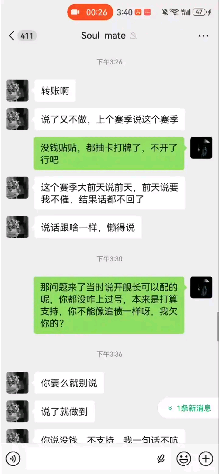 避雷逆天某战主播,粉丝开舰长支持主播这位主播不仅对粉丝没有应有的尊重还每天骚扰粉丝。每天就只会发什么时候支持一下,潜台词就像是“你赶紧转钱别浪费时间”,在粉丝被骚扰的彻底烦了之后并明确不会在“支持”这位主播,主播终于漏出了真面目。