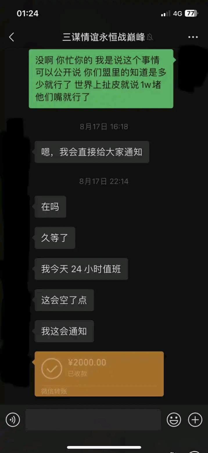 W6-108情谊永恒卖了问鼎后黑钱。2k只是定金,没想到为了定金马都不要,这么多赛季也是万万没想到。只能当给这个盟的管理买材了。盟主编号10437058349。顺便问候一下为了霸业打自己人的大荒。